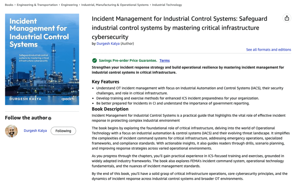 Let’s be real in the world of industrial control systems, it’s no longer about if an incident will happen, but when and how ready you are to handle it. This book isn’t another cybersecurity manual filled with jargon or buzzwords. It’s a field-tested guide built from real experiences in control rooms, plant floors, and response teams. Whether you’re an engineer trying to make sense of your first OT incident, or a seasoned professional leading recovery efforts at 3 a.m., this book will help you prepare, respond, and recover with confidence. Because in today’s world, resilience isn’t optional — it’s survival.